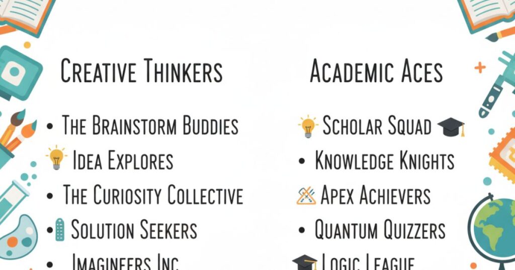 In this article, you’ll find a big collection of creative group names for students. These ideas work for friends, classmates, or even university squads. Whether you want clever, modern, or traditional, there’s something for everyone here. Let’s explore the best student group names to make your team shine.